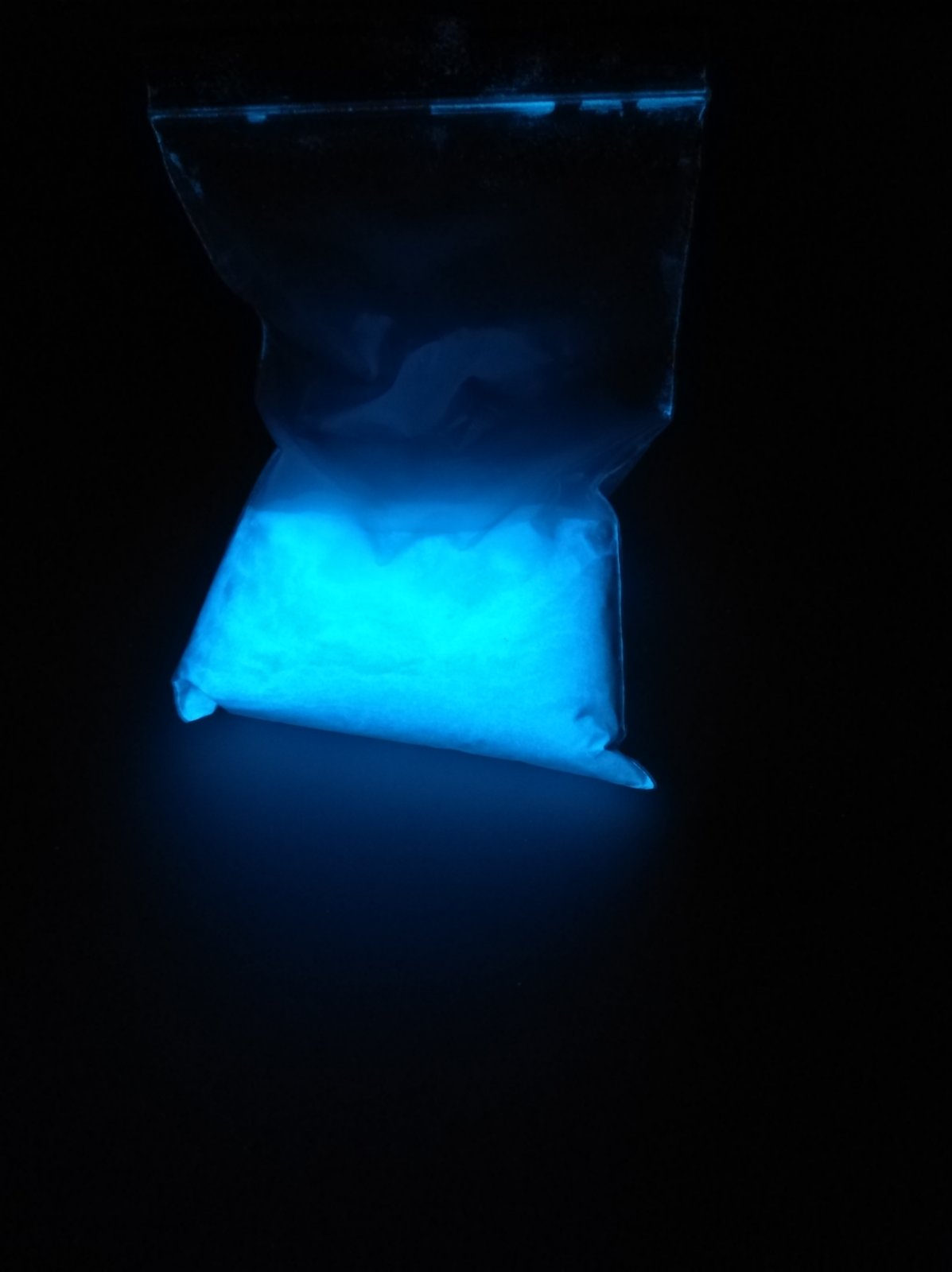 На фото изображена фасовка 100 грамм (потенциально 0.5 л), так же фасовка 1 кг из которых можно сделать пять литров готовой люминесцентной краски.